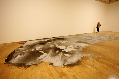 روجر هيورنز (34) عن قطعته الفنية المسماة نوبة Seizure المتكونة من ركام من الرماد والغبار الاسود والرمادي على مساحة من صالة العرض والمتخلف من احتراق محرك طائرة ركاب نفاثة، كما نجد على الجانبين تمثالين مصنوعين من بقايا مخ أبقار، وفي أحد الاطراف ركام من الشمع الذائب وفي